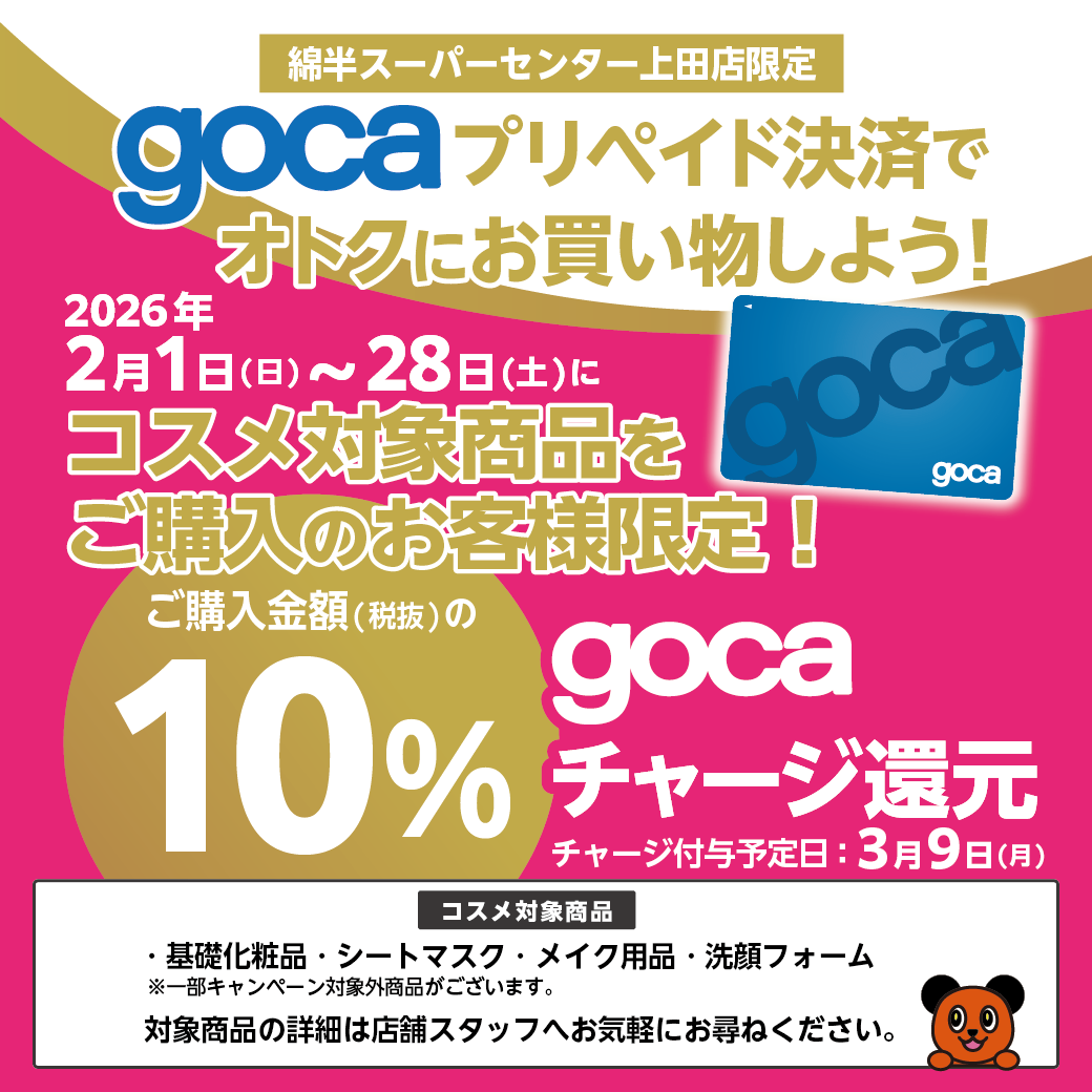2026年2月開催、綿半上田店限定コスメキャンペーンのご案内です。