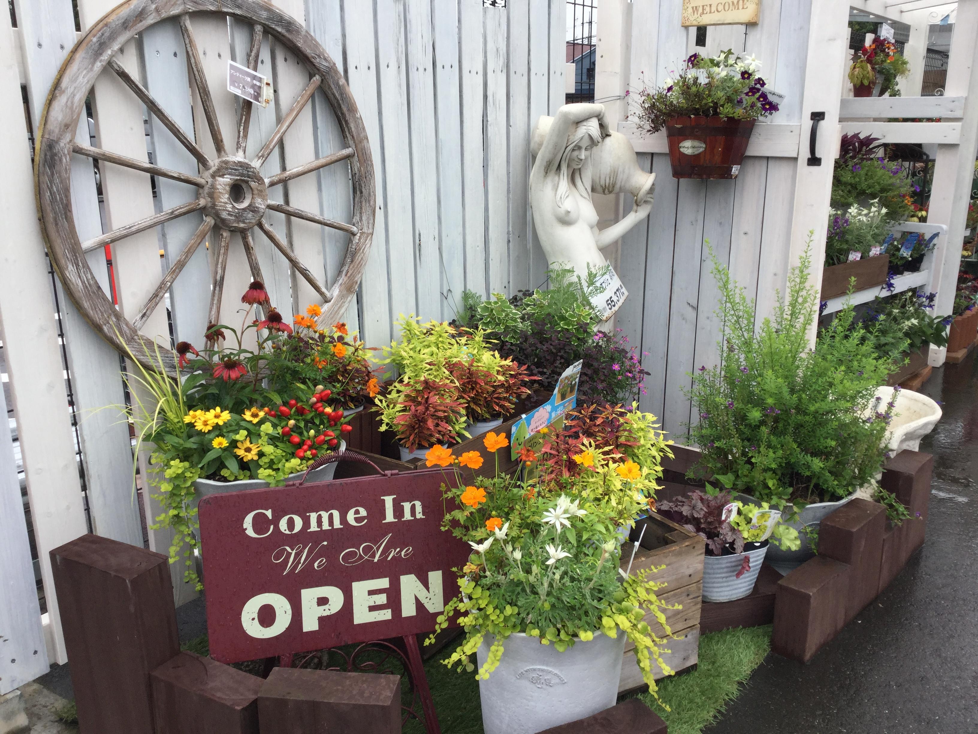 こんにちは!今日も雨ですね(。-_-。)梅雨明けが待ち遠しいですね。 園芸売場入口のメッセージガーデンをご紹介します。 涼感を演出する夏の定番マリンカラー#ブルー&ホワイトセレクション#