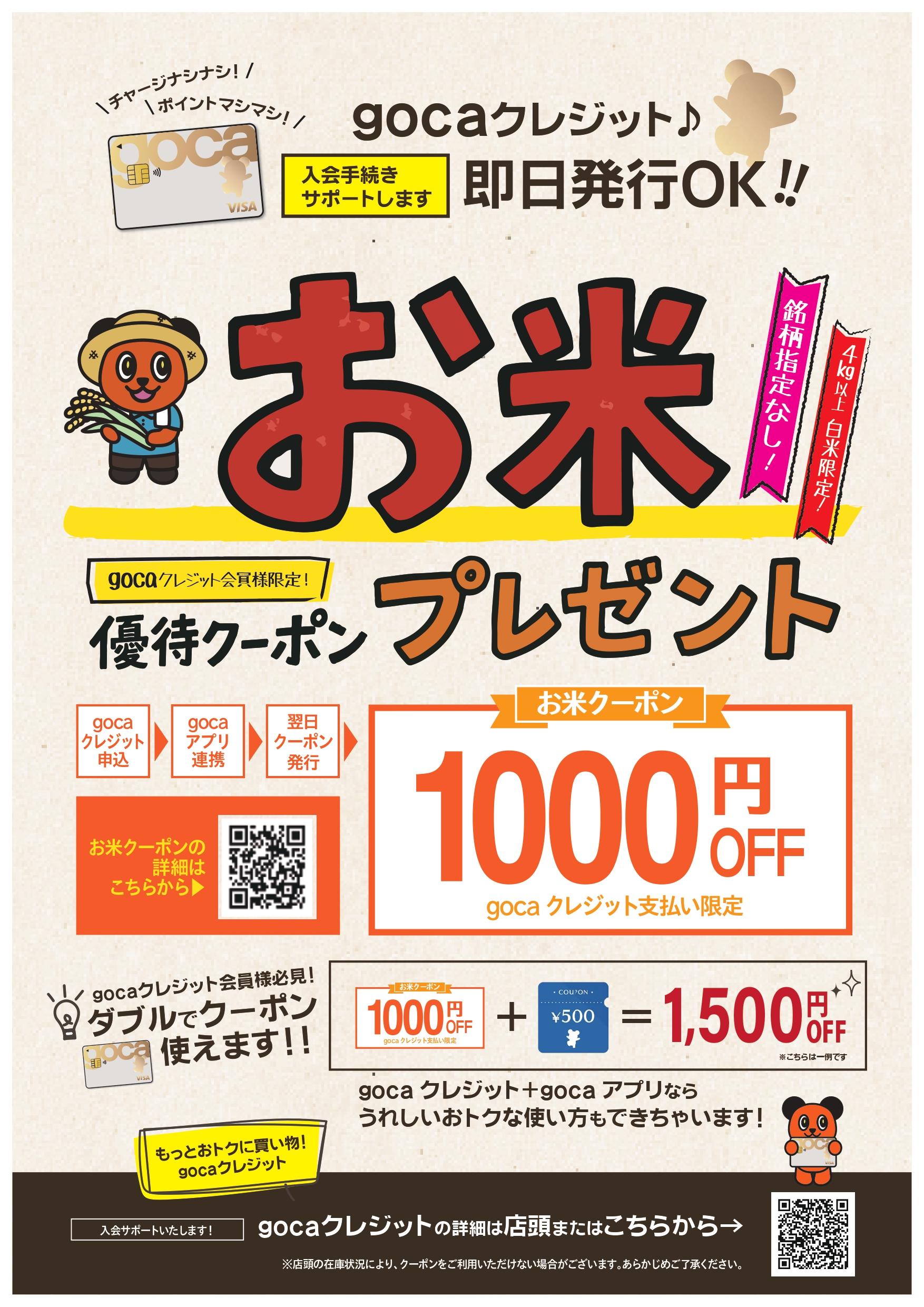 ご好評につき第二弾!【gocaクレジット会員様限定】お米優待クーポン配信中!