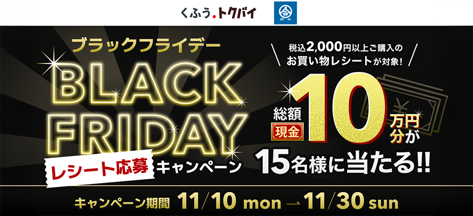 年に一度のお得な祭典「ブラックフライデー」にあわせて、くふうトクバイが主催する現金プレゼントキャンペーンがスタート!