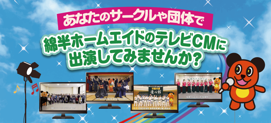 あなたのサークルや団体で綿半ホームエイドのテレビCMに出演してみませんか?
