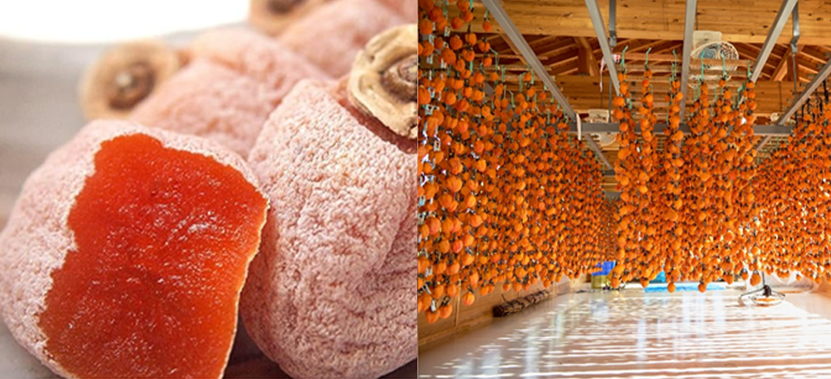 綿半では、南信州の生産者さまと連携し、渋柿の収穫から吊るし作業、加工作業まで一貫して携わっています。