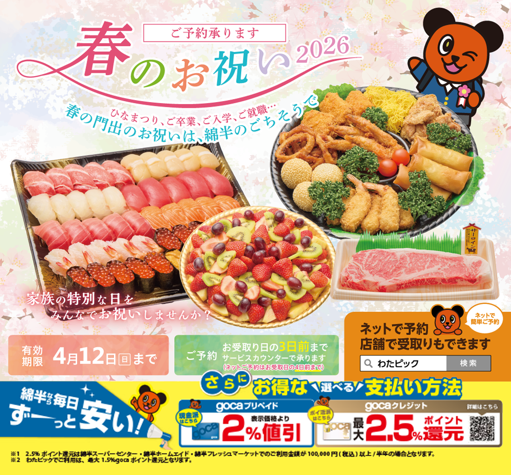 2026年4月9日(木)※「わたピック」ご予約は2026年4月8日(水)まで