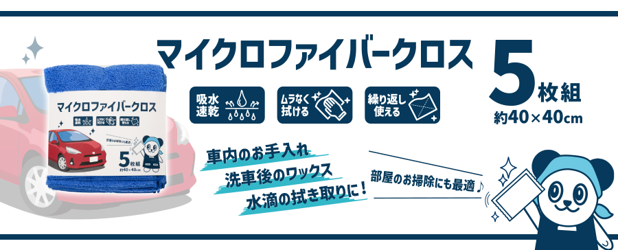 加えて、お得な5枚入りで、洗車後の拭き取りはもちろん、